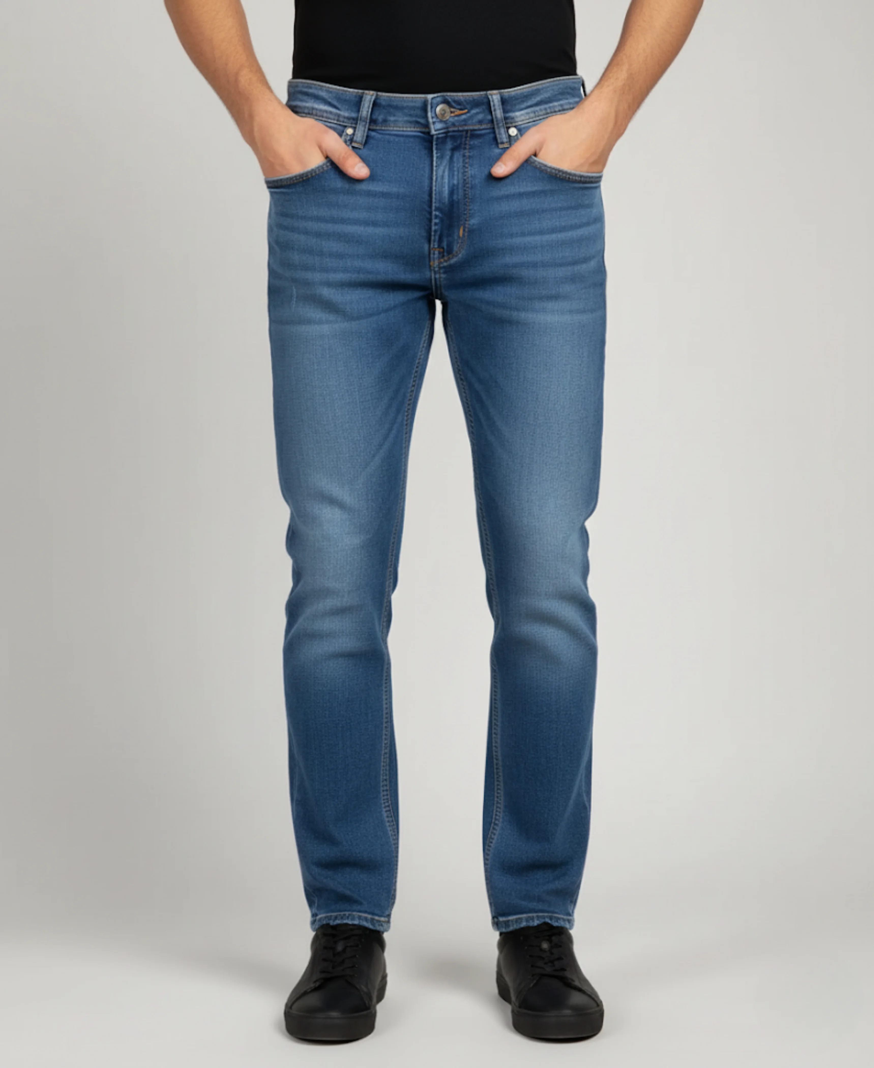 Men’s Mid-Wash Blue Denim – Comfort Stretch Slim Fit