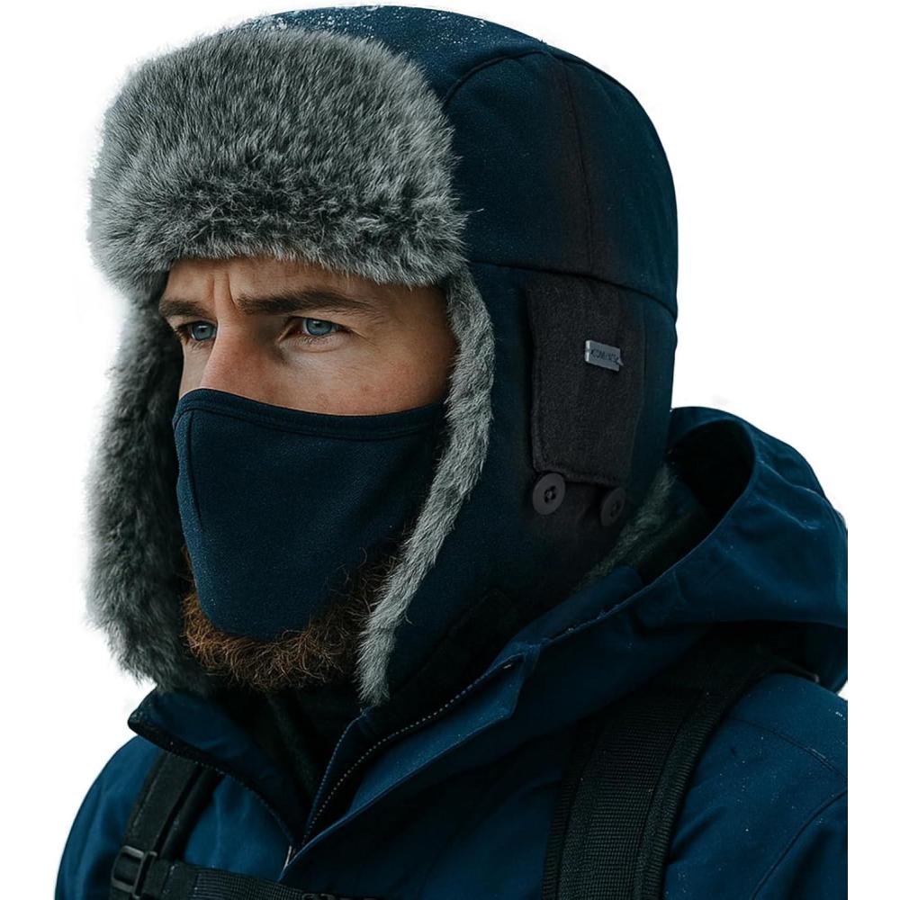 Comhats Large XL Trapper Trooper Hunting Warm Ear Flap Russian Ushanka Winter Ski Cold Weather Bomber Hats for Men(Navy)